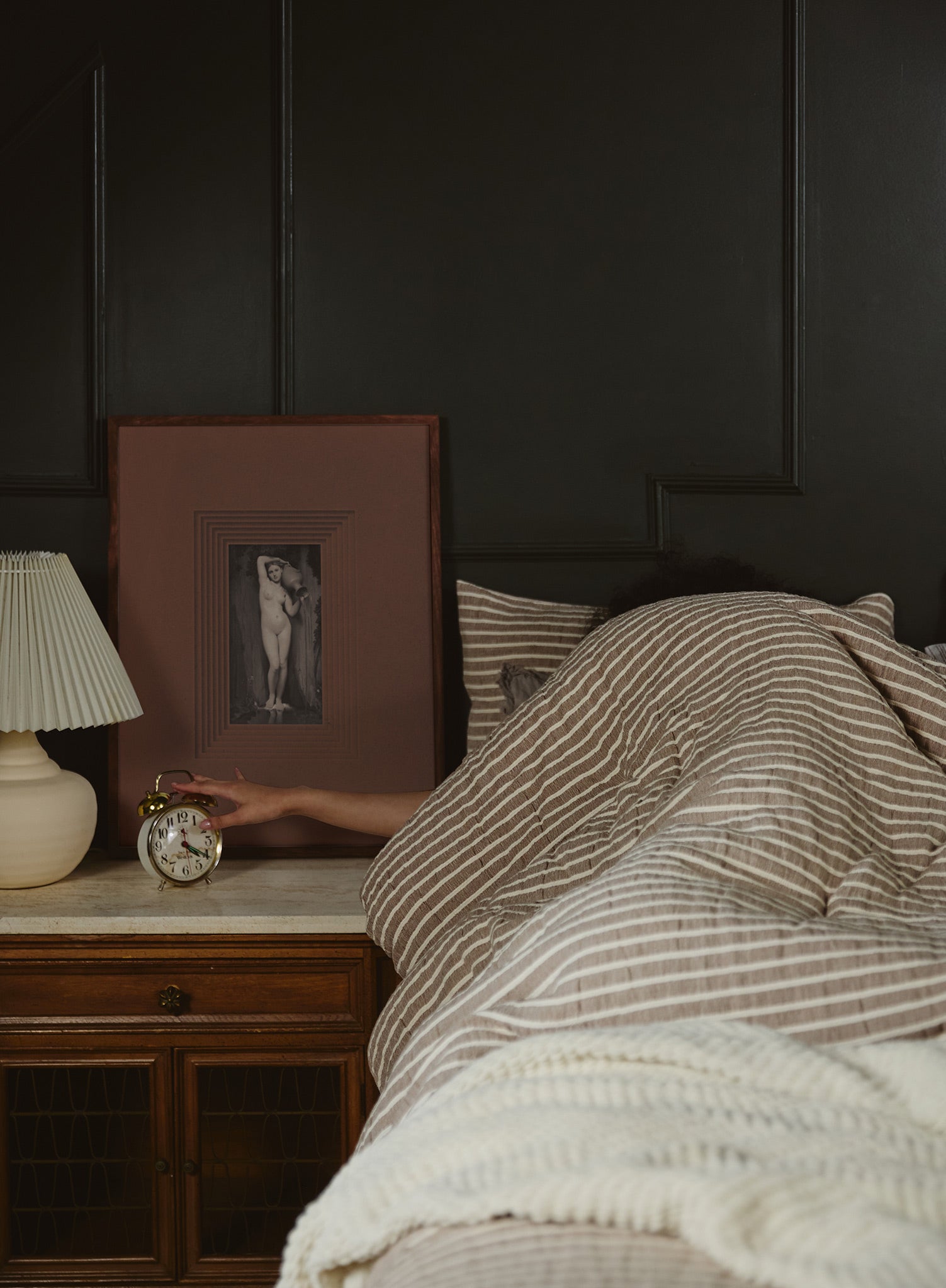 The artist captures the soft curves of the figure and the delicate play of light and shadow, adding depth to the composition. The setting feels intimate and historical, as though the viewer has been transported to a different era.
